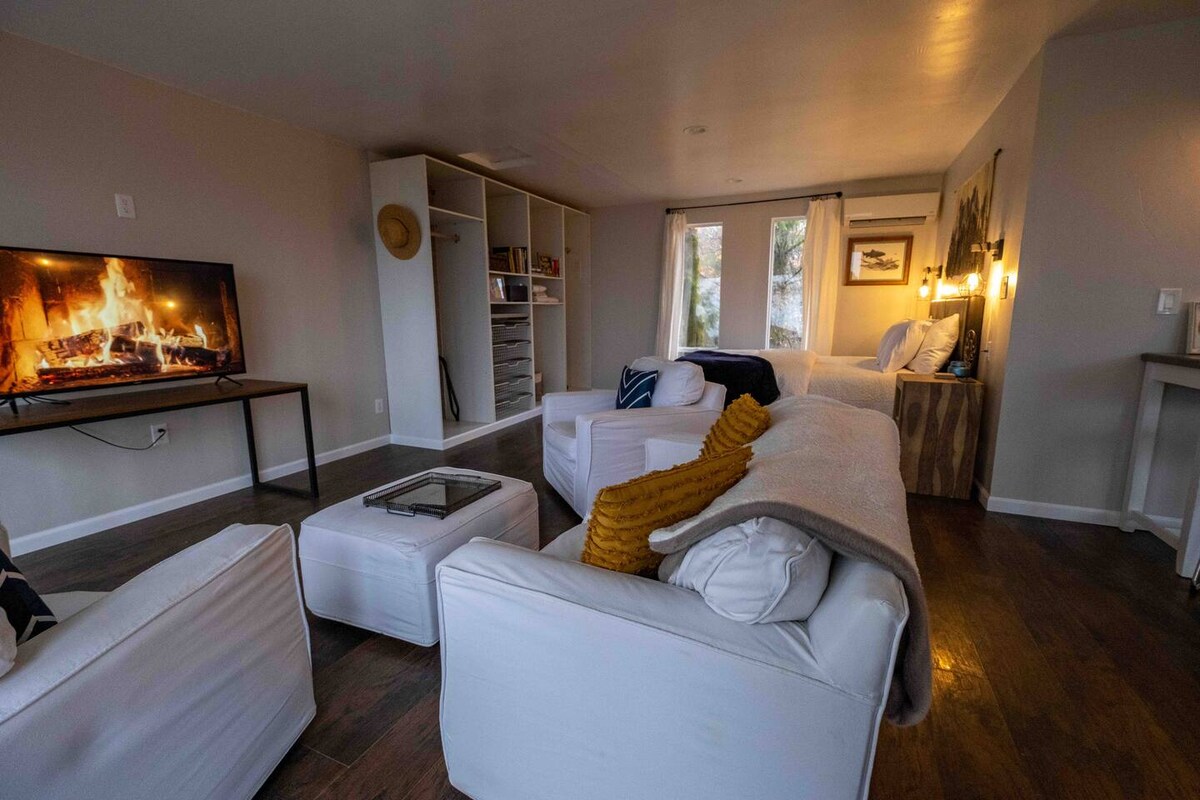 Velkommen til dette hyggelige, indbydende gæstehus, en fredfyldt oase i hjertet af Auburn, Californien! Vores hyggelige gæstehus ligger på en charmerende lille familiegård og tilbyder den perfekte blanding af rustik komfort og fredfyldt natur. Vågn op til lyden af naturen på gården, bliv omfavnet af egetræer, og bliv forfrisket af den rolige atmosfære. Du kan udforske Aubourns historiske centrum et par minutter væk eller gå på naturskønne vandrestier i området, eller bare slappe af og komme i kontakt med naturen igen i fredfyldte omgivelser.