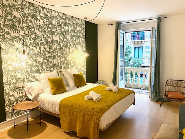 Denne nye hyggelige lejlighed i bystil med et soveværelse med kingsize seng og sovesofa (144x180cm) ligger i hjertet af Gros-kvarteret, 1 minut gang fra byens centrum Det er nyligt blevet renoveret og har aircondition, 55" tv, Wi-Fi, Nespresso. Fuldt udstyret til børn og babyer. Perfekt beliggende 2 minutter fra bus- og togstationen, samt ved siden af et direkte busstoppested til San Sebastián lufthavn.