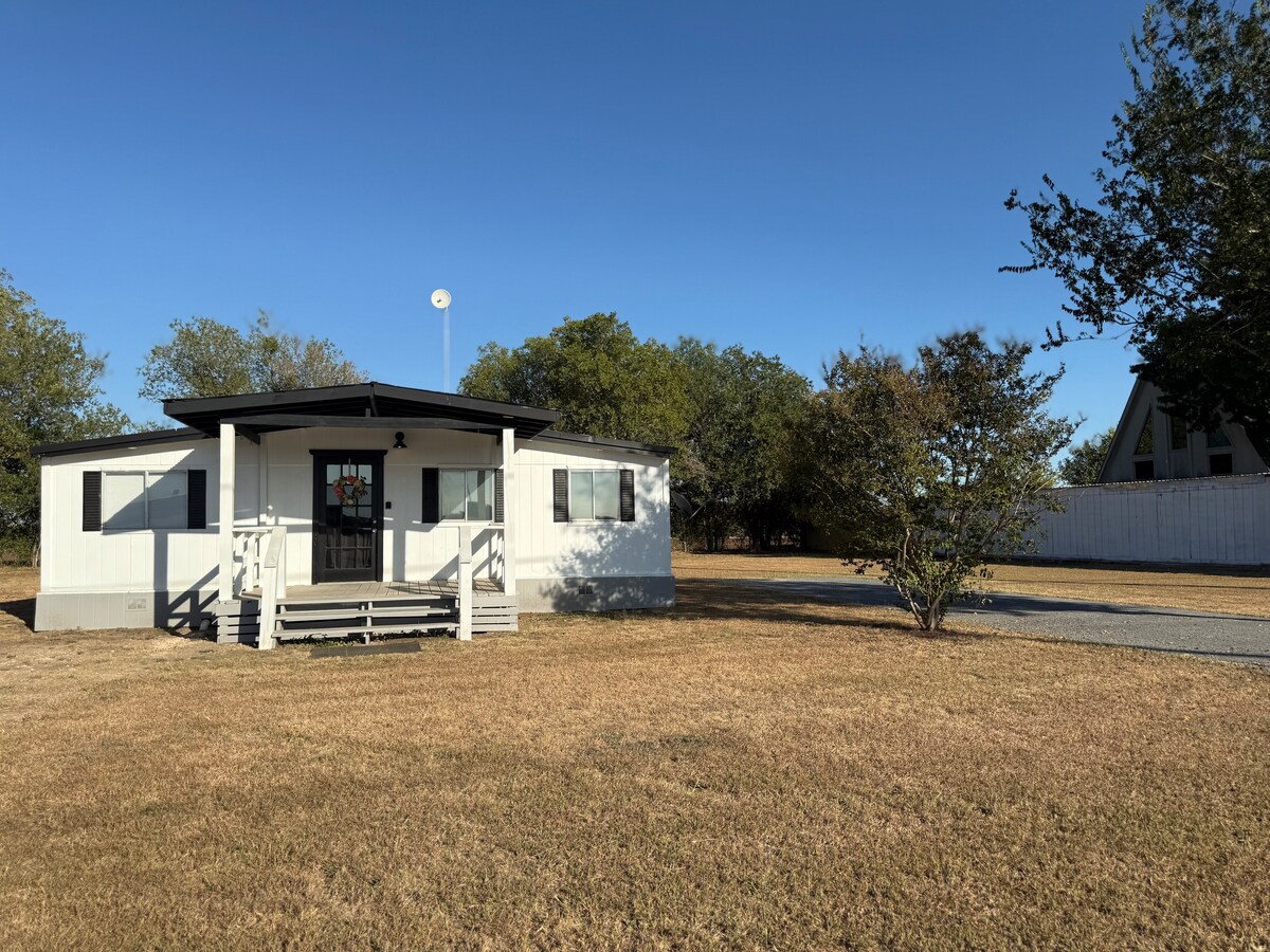 Hyggeligt bondegårdsophold i Texas Slap af, hvor bred himmel, stille nætter og landlig charme sætter tempoet. 🐓 Få minutter fra Gruene, New Braunfels, San Marcos, Guadalupe- og Comal-floderne – plus en klassisk drive-in-biograf lige nede ad vejen. 🍿🎥 Kun for voksne og perfekt til at slappe af, udforske og nyde fredelige udsigter over gården. 😌 4 sovepladser (queen + sovesofa). Udtrækssengen er bedst til 1 voksen eller 2 små gæster. Der er sengetøj. Ekstra gæster koster 10 dollars per nat. Prisen er for to gæster. 🐓