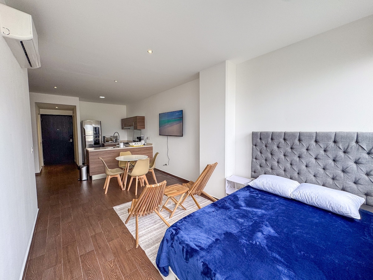 Smukt område beliggende i den sydlige del af byen Monterrey. Et par minutter fra indkøbscentre såsom: Pueblo Serena, Esfera og Omnia. 5 minutter fra TEC de Monterrey, 3 minutter fra UANL Mederos campus, 3 minutter fra Muguerza Sur hospital i bil og 5 minutter til fods fra Vitapista del Rio La Silla. Store grønne områder med pool 100 % ombygget suite med nye apparater og Netflix Kom og nyd et fantastisk ophold i dette smukke sted.