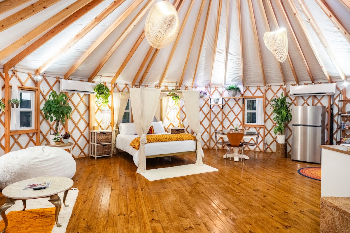 Mockingbird Yurt/spabad/tæt på byen/varme og aircondition