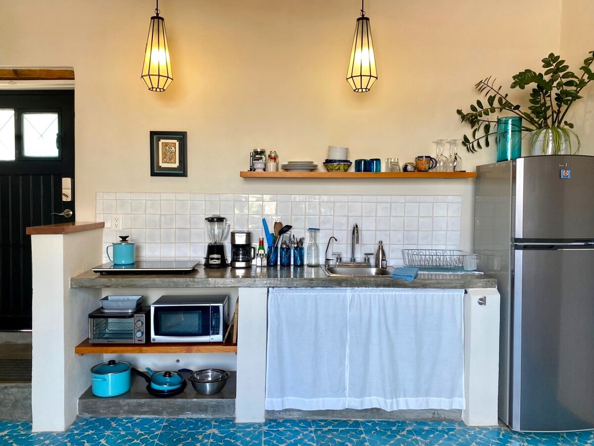 Perfectly located in the center of Guanajuato on historic and colorful Tecolote, a tranquil PEDESTRIAN street only a few minutes walk uphill from plentiful restaurants, bars, theaters and activities. This apartment offers incredible VIEWS, beautiful old world charm and modern conveniences. The balcony is right off a comfortable living/dining/kitchen area, a great space to hang out and relax. The separate bedroom has 2 closets and a bed comfortable enough to ensure you a fabulous nights rest.