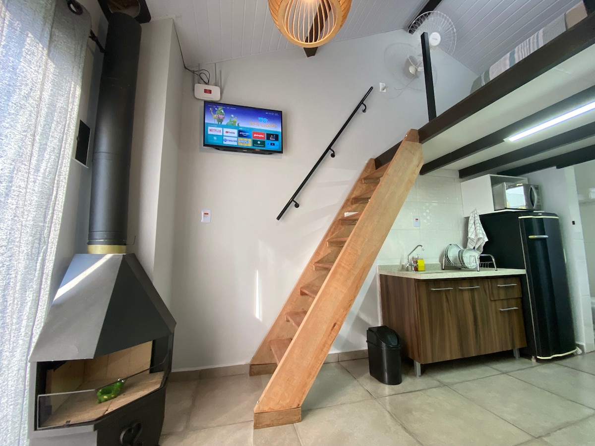 Slap af med familie, venner eller kæreste i denne rolige bolig midt i naturen. Loftslejlighed med plads til op til 4 personer. Rummet tilhører ejendommen Sitio Recanto do Luar og er designet til at imødekomme gæster, der sætter pris på livet på landet med familien og få mennesker. For at gøre det nemmere for dig, har vi sengetøj og badehåndklæder til brug i loftslejligheden. Den har køleskab, mikrobølgeovn, tallerkener, glas og bestik til færdigmad.