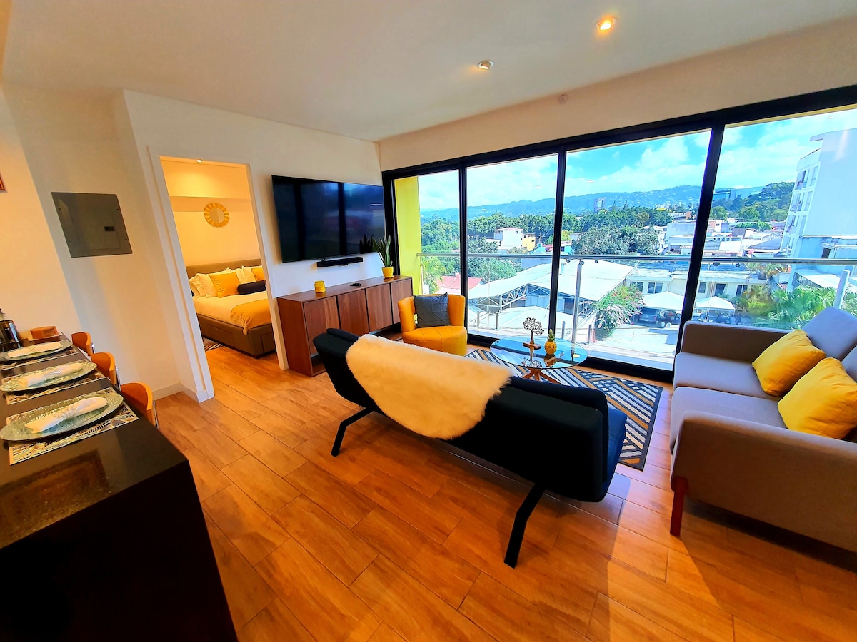Velkommen til Blue Skyline, en moderne og hyggelig lejlighed beliggende i QUO-bygningen, ideel til afslapning eller arbejde. Nyd en behagelig udsigt over byen og en strategisk beliggenhed i nærheden af Cuatro Grados Norte, restauranter, caféer og forretningsområder, og kun få minutter fra Zone 1 og La Aurora International Airport. Perfekt til praktiske ophold og forretningsrejser.