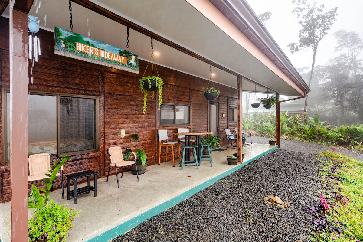 🏡Denne smukke bjælkehytte i beton er et stykke ro! 🥘🍳🔥Fuldt køkken, aircondition, afskærmede vinduer og forseglede døre 🛏️🚽2 soveværelser (1 ensuite) 2 BA + futon. 🫧👕Tøjvask 📶5G fiberoptisk wi-fi 🍍Inkluderer morgenmad, frugt, snacks, forfriskninger og hygiejneprodukter. Beliggende få skridt fra Rio Celeste. Fuglekigning på stedet! Vandring, vandfald, ridning, chokolade- og kaffefarme, labyrint, tubing, Volcan Tenorio National Park, dovendyr og natlige nattelivsture inden for få minutter!