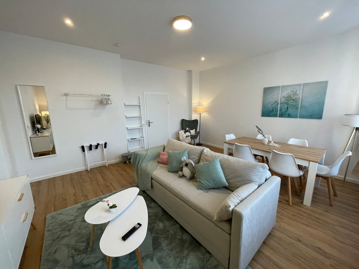 Slap af og slap af – i denne rolige, stilfulde og fuldt udstyrede 2-værelses lejlighed. Jeg bruger lejligheden meget sjældent og er glad for at tilbyde dig den som et smukt sted at bo: Den har alt, hvad du har brug for: - 53 kvm - tæt på gratis parkering på gaden - Wi-Fi - TV - Vaskemaskine (til donation) - Et udstyret køkken - 1 dobbeltseng - Sofa og skrivebord med skærm i stuen - Balkon - Bypark, gammel Elbe og supermarked foran døren - Bad med bruser