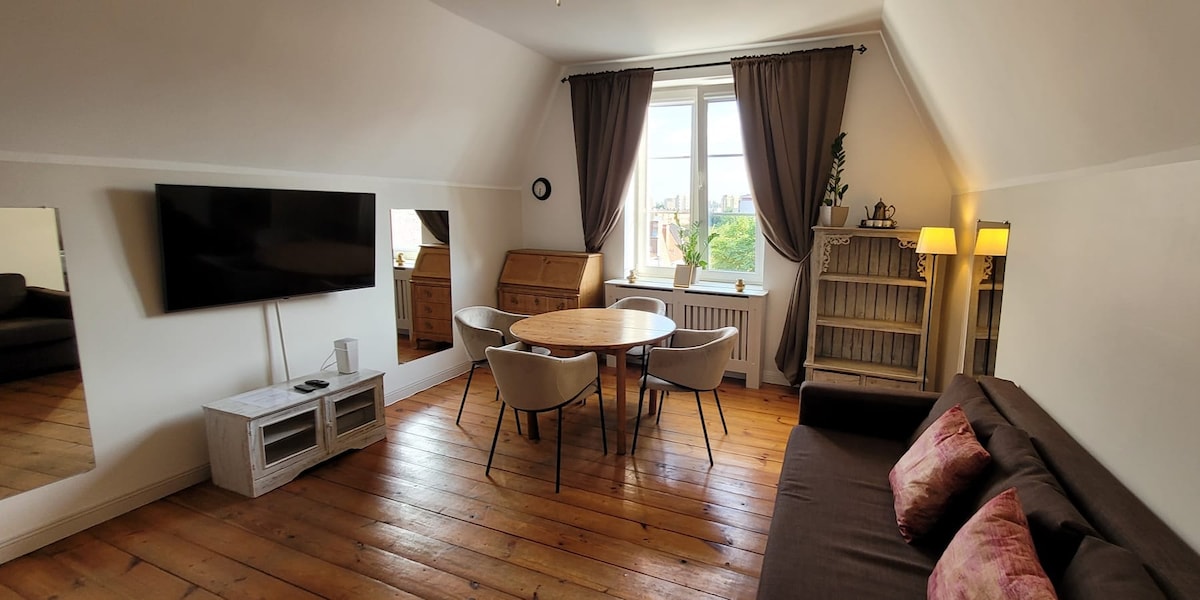 Centralt beliggende med udsigt over den gamle bydel. Smagfuld, nyrenoveret, fuldt udstyret, solrig lejlighed for to personer med mulighed for 2 ekstra gæster. En dejlig 10 minutters gang til den gamle bydel. Et bredt udvalg af forskellige barer, caféer, restauranter, teatre, biografer, lokalt håndværk og kunstnere. Beliggende 7 minutters gang fra hovedbanegården og offentlig transport. Vi byder dig velkommen til at lære vores smukke by og dens rige historie at kende, mens du slapper af i vores rolige ferie