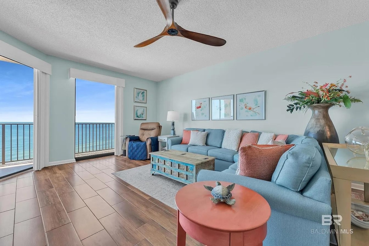 Wake up to the Gulf right outside your window. This comfortable, updated oceanfront condo has breathtaking balcony views, TempurPedic beds, & everything needed for a relaxing beach escape. What guests love most: • Direct beachfront location with private balcony • TempurPedic mattresses • Heated pool & sauna • Beach wagon, chairs, umbrellas included • Fully equipped kitchen & bathrooms Close to local favorites like The Wharf, Gulf State Park, The Hangout, Flora-Bama, & Adventure Island.