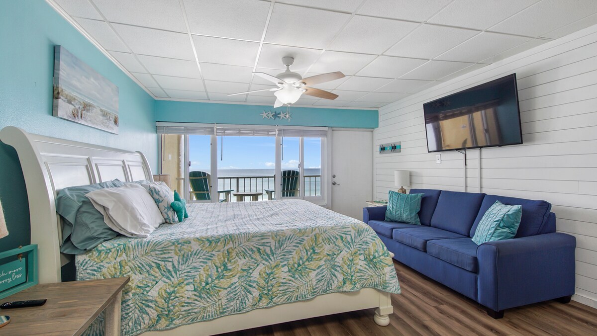 STUDIO MED STRANDUDSIGT OG HELT NY SENG FRA 3. NOVEMBER‼️ Nyd en stilfuld oplevelse i denne luksuriøse A+-strandlejlighed med havudsigt og fuldt køkken 517 på 5. af 6 etager beliggende i en førsteklasses beliggenhed, så du kan nyde alt det, Panama City Beach har at byde på. Kun gåafstand fra Pier Park, Gulf World, mange restauranter, barer og mange andre seværdigheder. Book dette smukke værelse for at tilføje luksus og komfort til dit ophold i Panama!