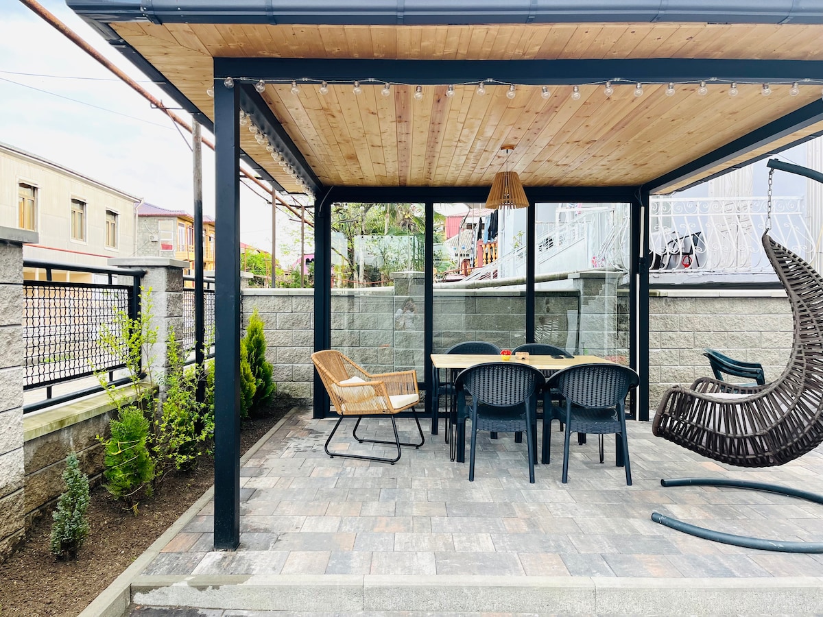 Slap af med hele familien på dette fredelige sted at bo. Huset ligger på det mest fredelige sted ved den georgiske kyst , vidunderligt sted kaldet Kaprovani. Når du booker, vil du se området Shekvetili , når reservationen er bekræftet, deles den nøjagtige beliggenhed. Stedet ligger tæt på Dendrologisk park , Black Sea Arena og Tsitsinatela park.