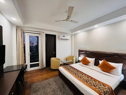 Oplev vores luksushotelværelse med balkon i Sector 57, Gurgaon. Kun få minutter fra Artemis Hospital, Golf Course Road og Sector 54 Chowk Metro, og det giver problemfri adgang til byen. Værelset er perfekt til medicinske, forretnings- og fritidsophold og kombinerer moderne komfort med elegance. Licens til at være vært for udenlandske statsborgere. Tidlig indtjekning vil være afhængig af tilgængelighed og vil koste 500 Rs. Det samme gælder for sen udtjekning, hvor der vil blive tilføjet 500 Rs. for hver 3 timer derefter.