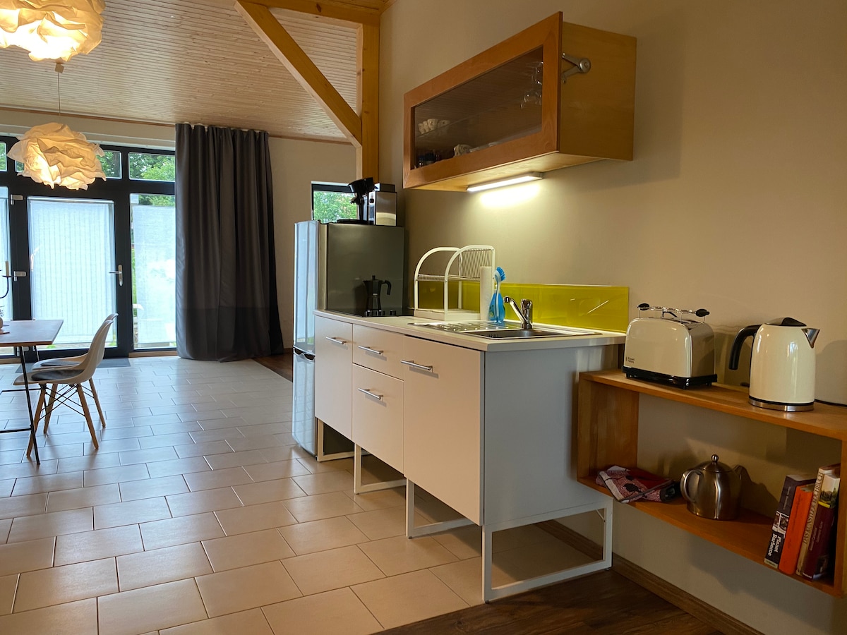 Ferielejligheden (siden midten af juli 2020) er lille, kærligt og specielt indrettet med lerpudsede vægge, håndmalede fliser på gulvet, yndlingsbilleder og -møbler. Den støder op til huset, som vi bor i som en familie med børn på en gammel gård med tre indkørsler. Der er ingen direkte naboer, masser af natur, og du kan tage på smukke udflugter i alle retninger på cykel eller bil: Østersøen, øerne, Stralsund, Greifswald, Rostock, Mecklenburg, Peene, Tollense ...