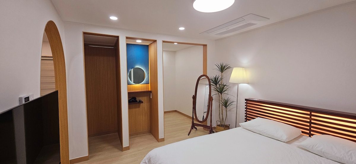 Drevet af en følelsesladet kvindelig direktør med en♥️ ENFP-personlighed Følelsesmæssig temperatur 🤍Slap af i jacuzzien Der tilbydes en🍷 flaske vin Bolig med mulighed for🙆♀️ madlavning (induktion, mikrobølgeovn tilgængelig) Parkering i den offentlige🅿️ parkeringsplads ved vandkanten eller den offentlige parkeringsplads for børn ved vandkanten (300 KRW pr. 10 minutter, 8000 KRW for 24 timer) (Der opkræves et separat gebyr for mellemlandinger) ❌🙅♀️Mindreårige må ikke overnatte uden samtykke fra en værge🙏 🤍Barneseng, babytæppe (fortæl os på forhånd) Lav ikke støj🙏 efter kl. 22.00 Udstyr 📋i boligen - Stue Projektor (Netflix, YouTube), Geneva-højttalere, standby lys, sofa - Soveværelse 1 queensize seng (ekstra queensize topper til rådighed), aircondition, toiletbord - Køkken Køleskab, Bermuda mikrobølgeovn, Bermuda kaffekande, Nespresso Kapsel kaffemaskine, spisebord, stole, service, fade, bestik