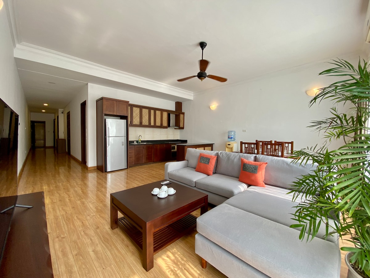 Vores rummelige, stille, fuldt airconditionerede suite tilbyder 3 soveværelser, 2 badeværelser, fuldt udstyret køkken, vaskerum og ubegrænset RO-filtreret drikkevand. Det er 10 minutters kørsel (0,5-3 dollars med Grab-bil) til Hanois gamle bydel, hvor der er dagligvarer, nærbutikker, restauranter og caféer i nærheden. + 5 min. kørsel: Hanoi University of Sciences, National Economics University, Hanoi University of Civil Engineering... +10 min. kørsel: Vincom Center, japanske restauranter (Bui Thi Xuan)... Elevatorer og parkering på stedet