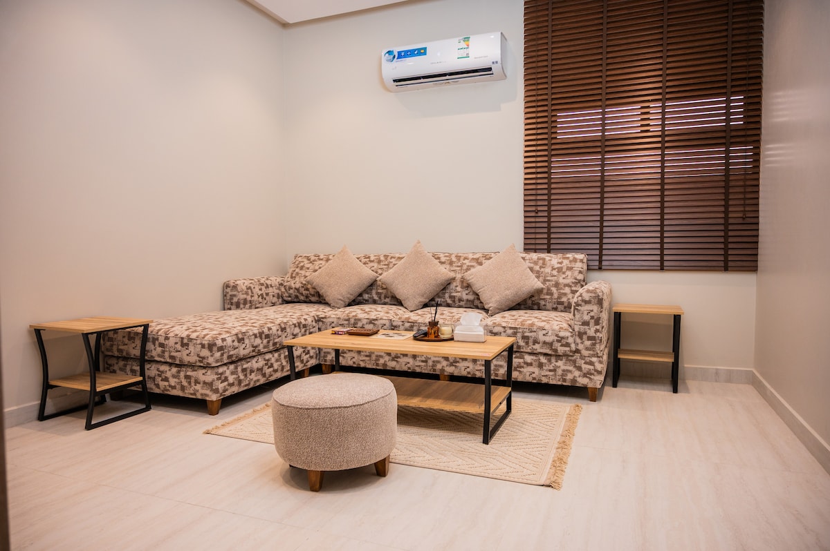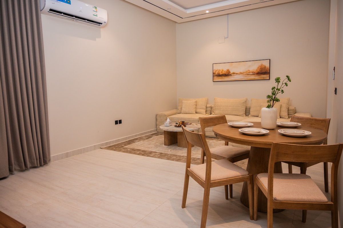 Med et unikt design, der sikrer komfort og luksus, med hotelmøbler, med et soveværelse med eget badeværelse Beliggenheden af Al-Fajr-kvarteret, hvor lufthavnen ligger 10 minutter væk, togstationen (Sar) 15 minutter i centrum af Hail 10 minutter, og den catalanske Hatim al-Tai 15 minutter i nærheden af landsbyen Nodeda og Aja bjergkæde er det åndedrætssted for befolkningen i Hail og dens besøgende, og i nærheden af det Mohammed Al-Arifi Street og Prince Saud bin Abdulmohsen for restauranter og caféer af moderne restauranter og caféer, og ved siden af det er aya park, en café, en hær café og andre