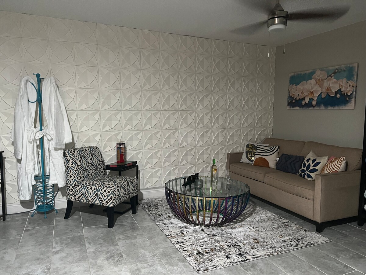 Stay in your own themed Florida apartment . Tropical, palm trees, beaches ,marine life, flamingos throughout this stunning apartment in a multimillion dollar home. After parking on gated driveway walk up to your own private entrance way to paradise. Keyless entrance. One flight up and your viewing gorgeous lake views second to none. Executive kitchen with everything you need to cook a 5 course meal. Outdoor balcony that will leave you amazed. Opulence, security, with Florida Style awaits you!