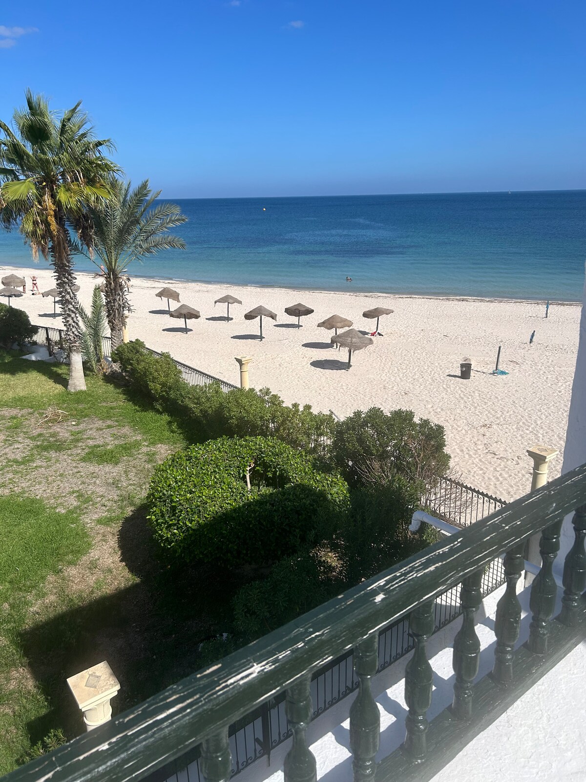 vores lejlighed ligger i et roligt kvarter i Sousse! Denne bolig er ideel til familier eller grupper af venner, der ønsker at nyde komfort og ro, samtidig med at de er tæt på alle bekvemmeligheder. Du vil elske den rummelige balkon, der er perfekt til at nyde din morgenkaffe eller til at beundre de spektakulære solnedgange over havet. Havudsigten er helt betagende og tilbyder idylliske rammer for at slappe af og genoplade.
