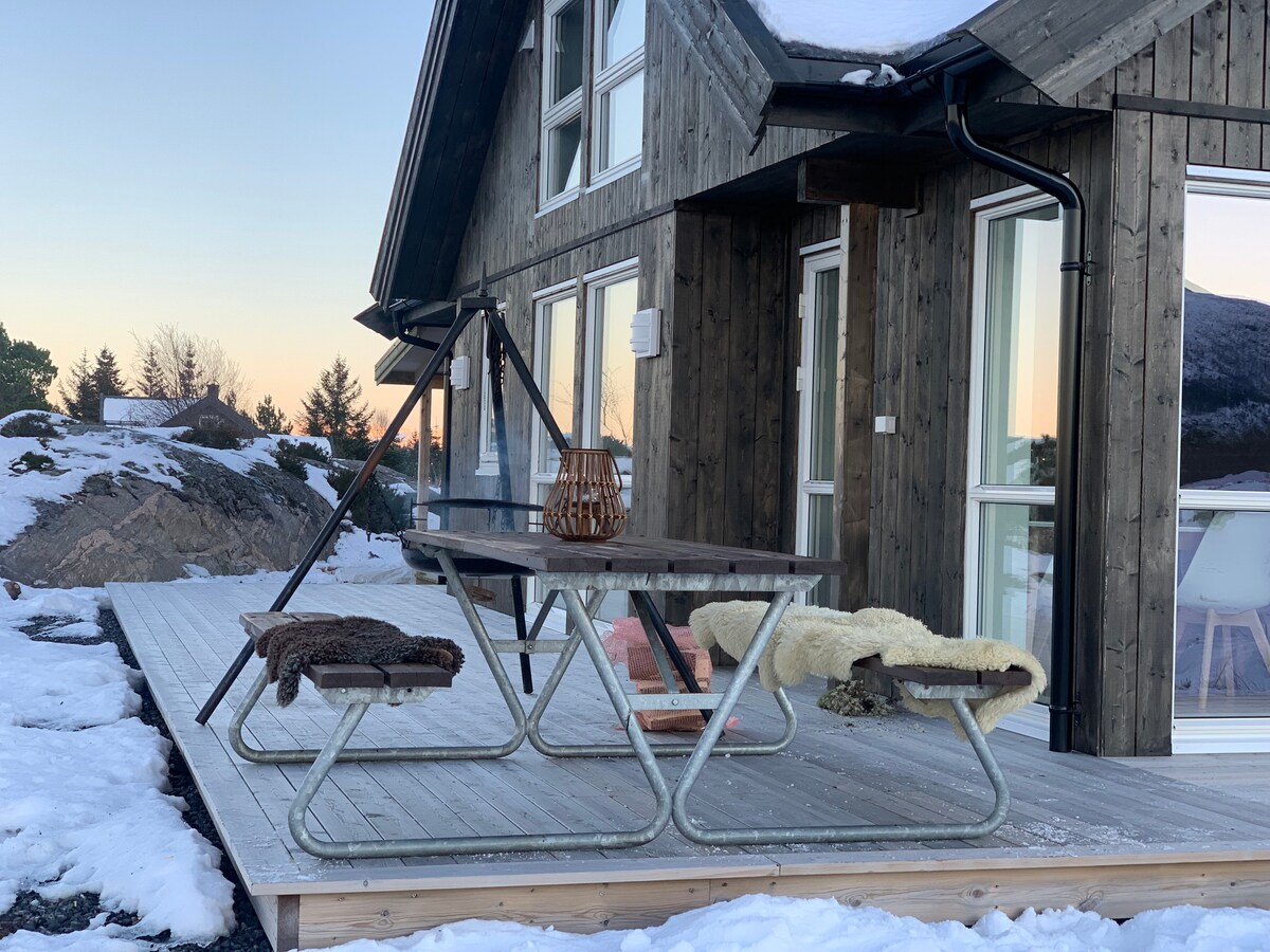 Moderne hytte, jacuzzi, fantastisk utsikt og natur