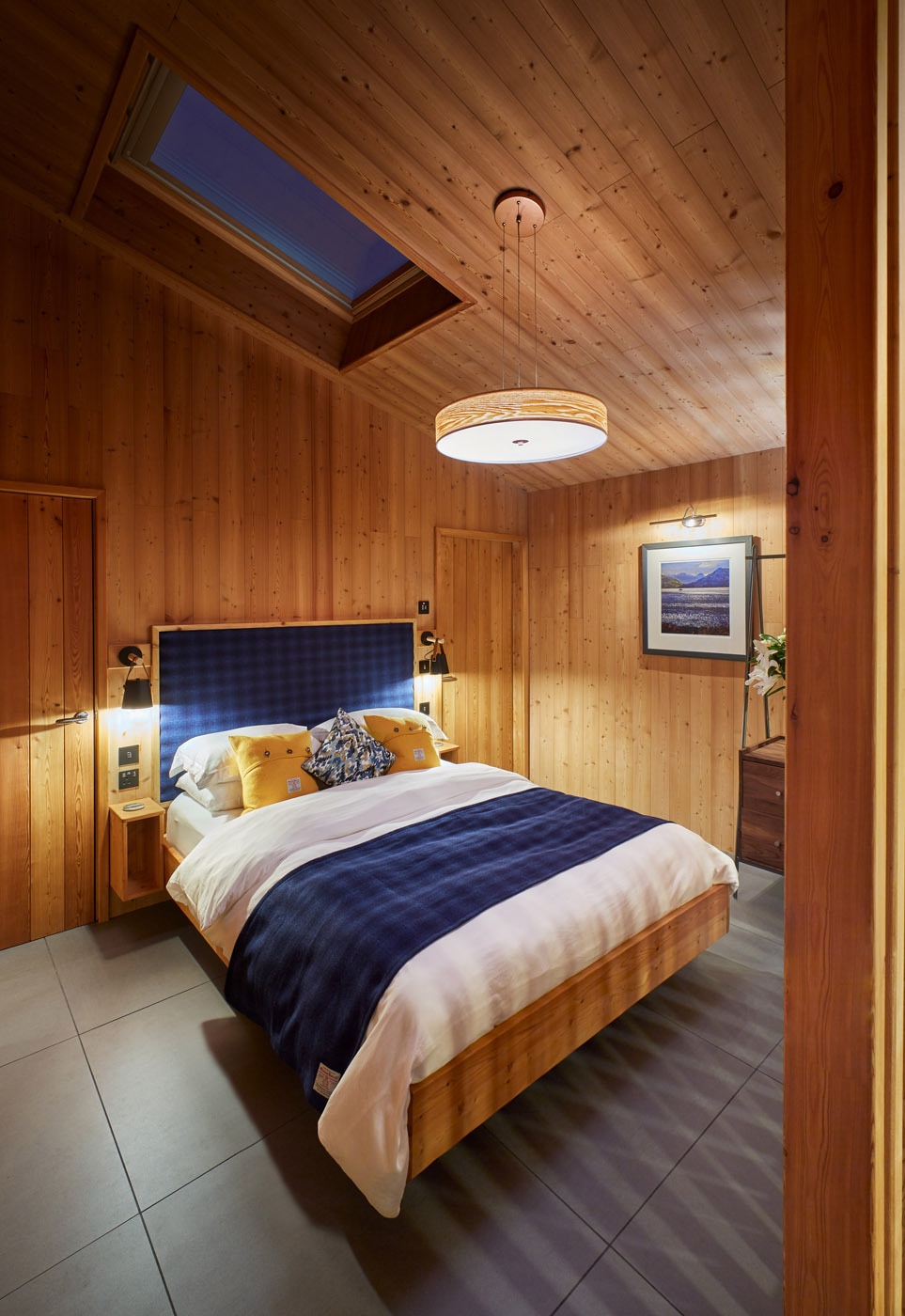 Tin House er vores moderne version af en traditionel bothy i højlandet. En rummelig, åben planløsning til opholds-/soveområde tilbyder alle de hjemlige bekvemmeligheder, du kan forvente. Store vinduer skaber et lyst rum med en fantastisk udsigt over søen til bjergene. En terrasse med lokalt fremstillede Adirondack-stole er det perfekte sted at se det lokale dyreliv eller sidde ud under vores spektakulære nattehimmel i de mørkere nætter. Håndklæder og sengetøj er inkluderet.
