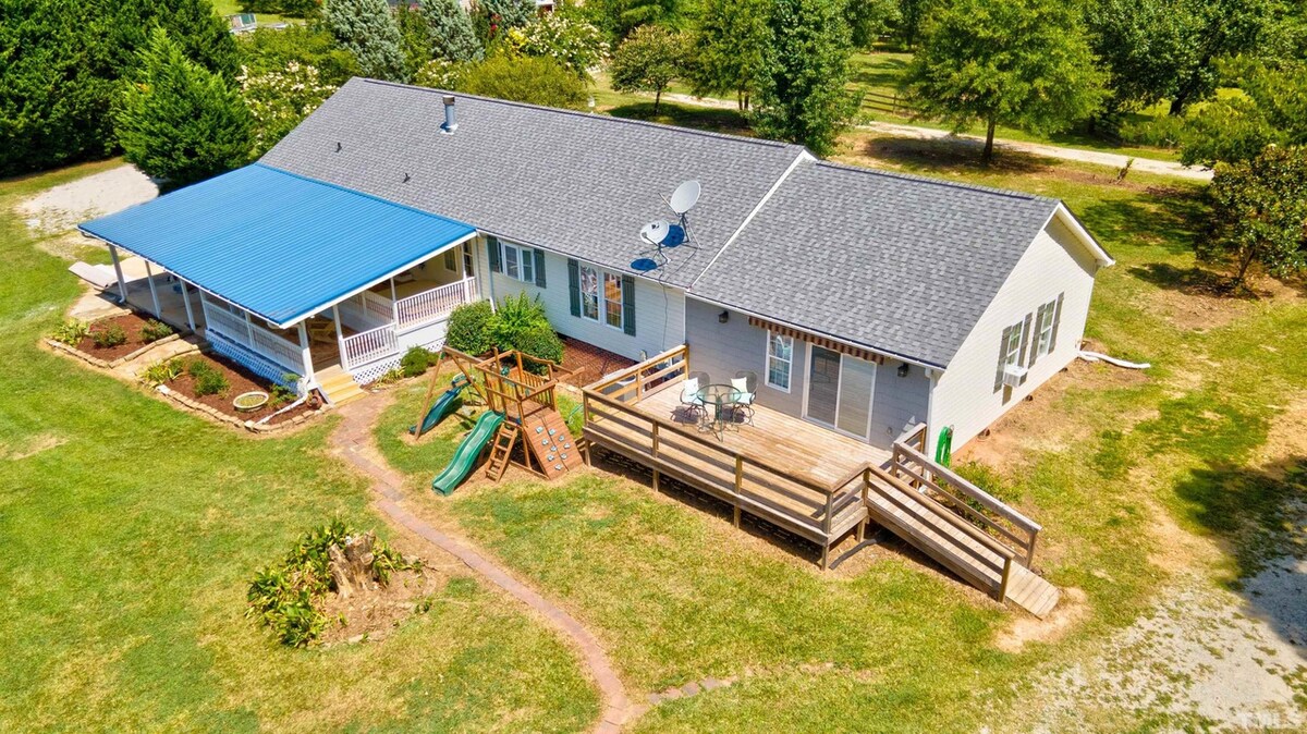 Tag på ferie i denne charmerende landhytte lige uden for Holly Springs, NC. Den ligger i fredelige omgivelser og har 3 hyggelige soveværelser, 2 komplette badeværelser og en rummelig veranda, der omgiver huset – perfekt til morgenkaffe. Nyd ildstedet til aftenens afslapning. En stor garage giver rigelig opbevaringsplads til dem, der er midlertidigt hjemløse. Uanset om du leder efter et roligt fristed eller et midlertidigt hjem, er denne fredfyldte bolig det ideelle sted at slappe af. (Campingvogn ikke inkluderet)