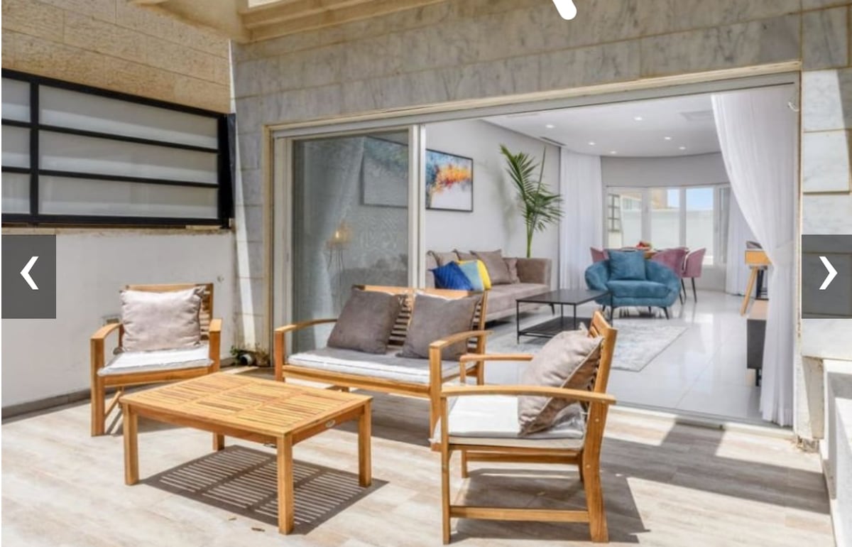 Villa Nof Yam i Netanya Beliggende i første række til havet 4 etager med 5 soveværelser, et af soveværelserne er et sikkert rum + 6. plads til mindst 4 ekstra gæster i kælderen. Fuldt udstyret hus med åben udsigt over havet En enestående ferieoplevelse, en luksusejendom i det dyreste nabolag i Netanya, Et minut fra havet med en fascinerende og betagende udsigt. Velegnet til familier, der ønsker at nyde et stort rummeligt sted, sjov og en ægte oplevelse.