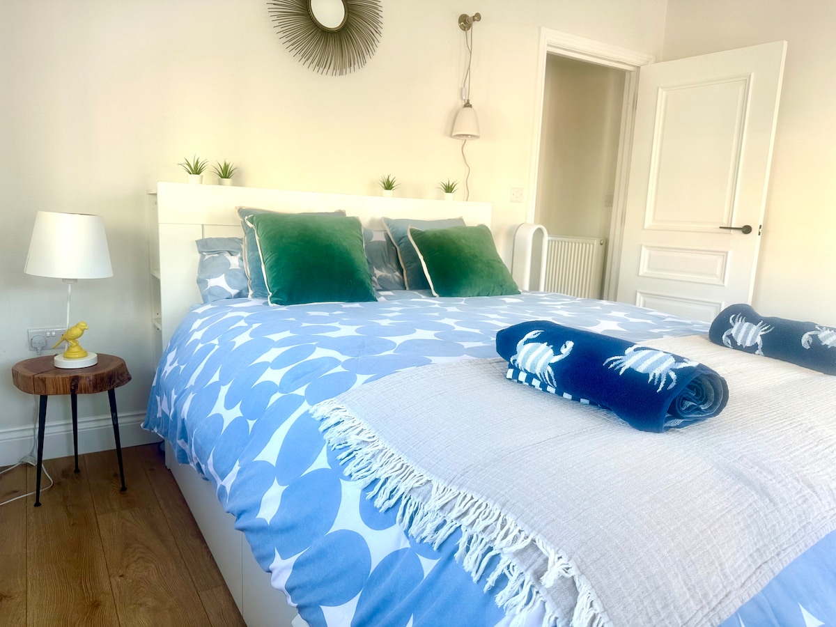 Vi har brugt meget tid på at skabe noget, som du gerne vil komme tilbage til, og vi glæder os til at byde dig velkommen! Det er nyrenoveret med egen indgang og lås nøgleboks, kun 2 minutters gang fra toget, 3 minutter fra barer, restauranter og shopping, og 6 fra stranden. Med en komfortabel kingsize-seng med hotelsengetøj, 42" tv og en regnbruser i travertin mosaik flisebelagt vådt rum. Gratis parkering udenfor kl. 23-13 på hverdage og hele tiden 50 meter op ad vejen.