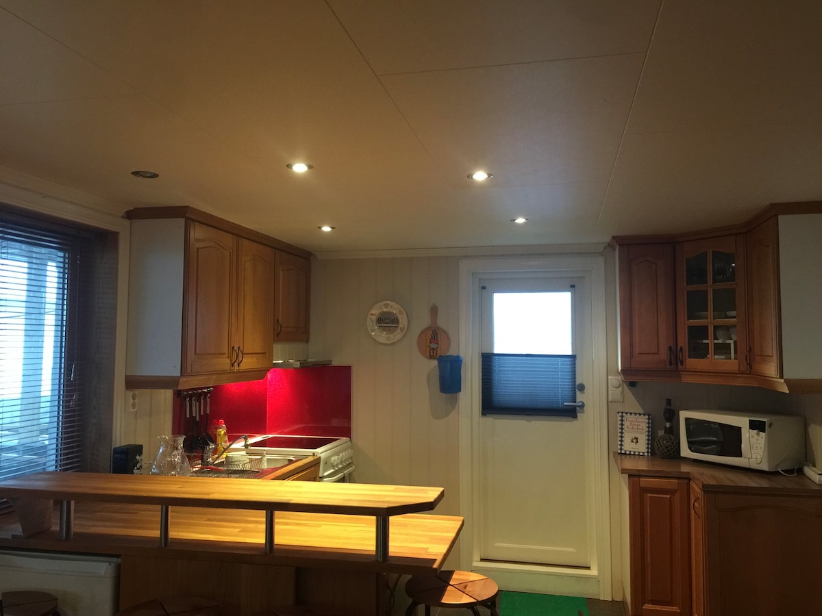Romslig leilighet med godt utstyrt kjøkken.