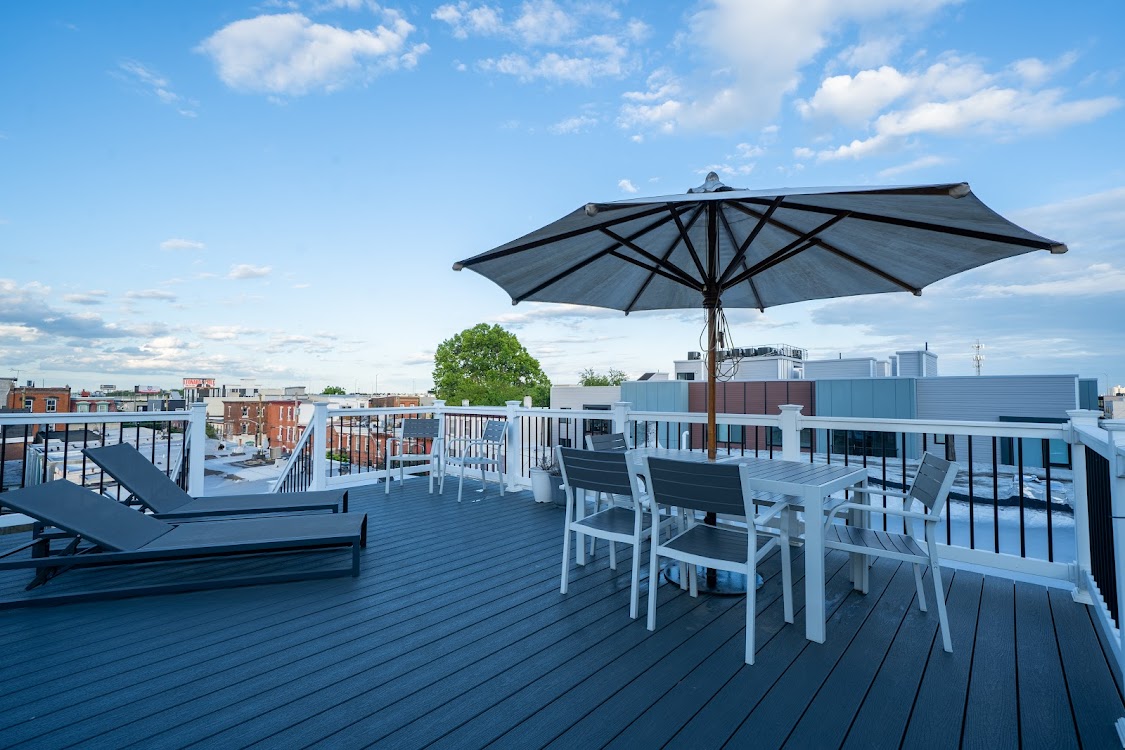 Tagterrasse med udsigt over byen i Fishtown