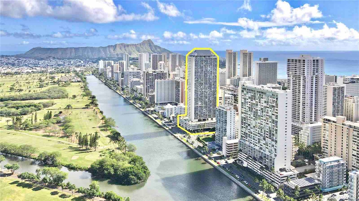 *Oloha! Velkommen til det sødeste studie i Waikiki!* Dette er en fuldt ombygget sød studiolejlighed med tekøkken i Hawaiian Monarch. Her er alt inden for gåafstand. Med det bedste indretning i Boho-stil, diamanthoved- og flodudsigt, sydvendt stort vindue, stående skrivebord med skærm og tastatur, 100 Mbps wi-fi-hastighed og projektor til 80 tommer skærmstørrelse! ALDRIG FOR LILLE til at få det bedste ophold i Honolulu Opdatering i maj 2025, *BILLIG PARKERING! Og nyt airconditionanlæg! Parkering koster 20 dollars/dag