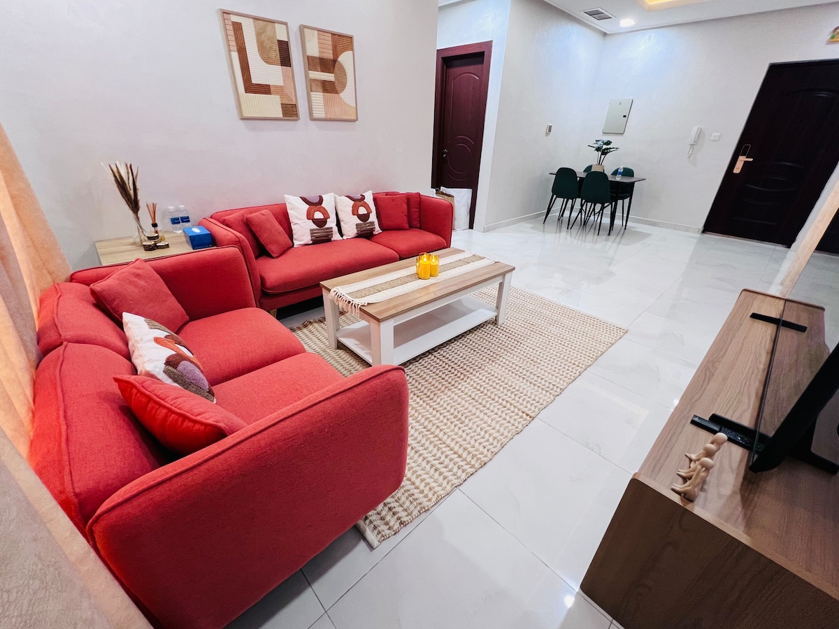 Den perfekte blanding af et enkelt, økonomisk overkommeligt og behageligt ophold i hjertet af Salmiya. *Indtjekninguden vært(koden gives før indtjekning *Lejligheden har 2 soveværelser, hvoraf det ene er mesteren med tilhørende badeværelse *Begge soveværelser har queensize-senge(160*200), der er perfekte til to personer. *Lejligheden har 5G-internet *70" Samsung TV i stuen og 55" Wansa TV i det store soveværelse med Netflix, Prime Video og YouTube. *Alle basale toiletartikler er til rådighed *Køkken med basale apparater, herunder vaskemaskine. *Køleskab med minibar