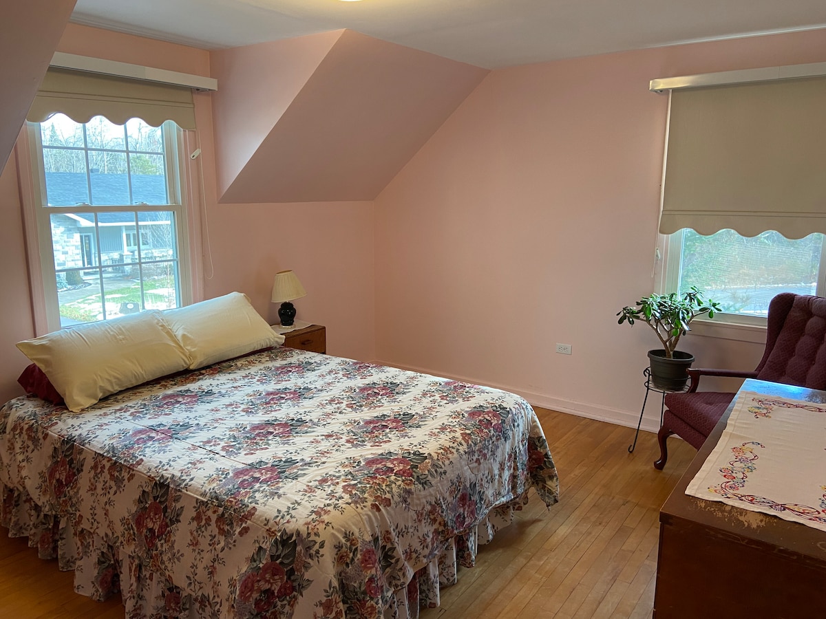 Vores skæve vognhus, der blev bygget i 1894, er et hyggeligt overnatningssted. Nyd alt det charme og karakter, der er forbundet med et hundrede år gammelt hjem, med moderne faciliteter, der sikrer et behageligt ophold. Du har hele huset for dig selv, og det er en trøst at vide, at dine værter bor ved siden af, hvis dine behov ikke bliver fuldt ud opfyldt. Beliggende i centrum, tæt på vandet, Pembroke Regional Hospital og Algonquin College. Nem pendling til CFB Petawawa, CNL og Algonquin Park.