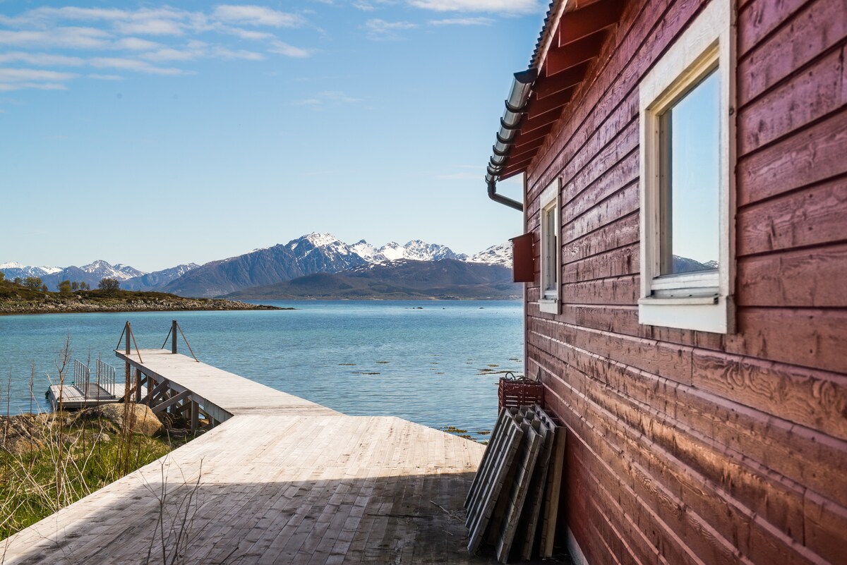 Et ægte og hyggeligt hus fra 1900 med en fantastisk atmosfære og udsigt. The Blue House er en optimal base for vandreture, skiløb, kajakroning, vandreture i snesko og bjergbestigning. Fiskeri i søerne eller i havet ligger lige uden for døren. Kort, førstehjælpskasse er gratis tilgængelige. Huset er lige blevet renoveret og malet i farver, der er valgt af "den blå by"-kunstneren Bjørn Elvenes. Oplader til elbiler er tilgængelig mod et ekstra gebyr.