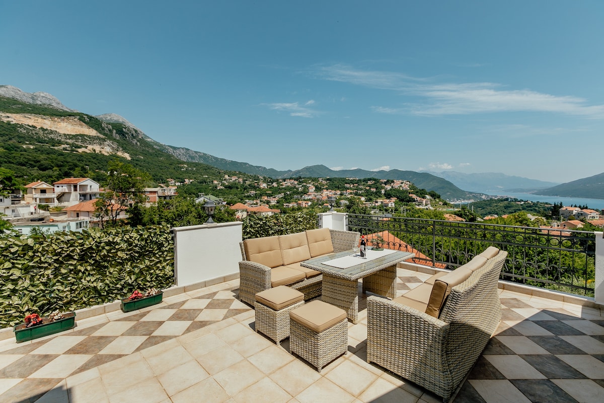 Grøn drømmebolig med udsigt over Kotor-bugten (parkering)