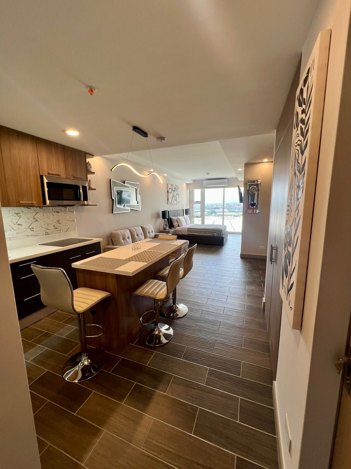 Set against the stunning backdrop of San José, Costa Rica, this modern apartment combines comfort, style, and accessibility for a memorable stay. Perfect for business travelers, couples, or solo adventurers, it offers a seamless blend of urban convenience and natural tranquility. - Cozy studio with Stunning Views - Fully-Stocked Kitchen - Access to Gym and Pool - Pet-Friendly - Close to Downtown San José and Escazú