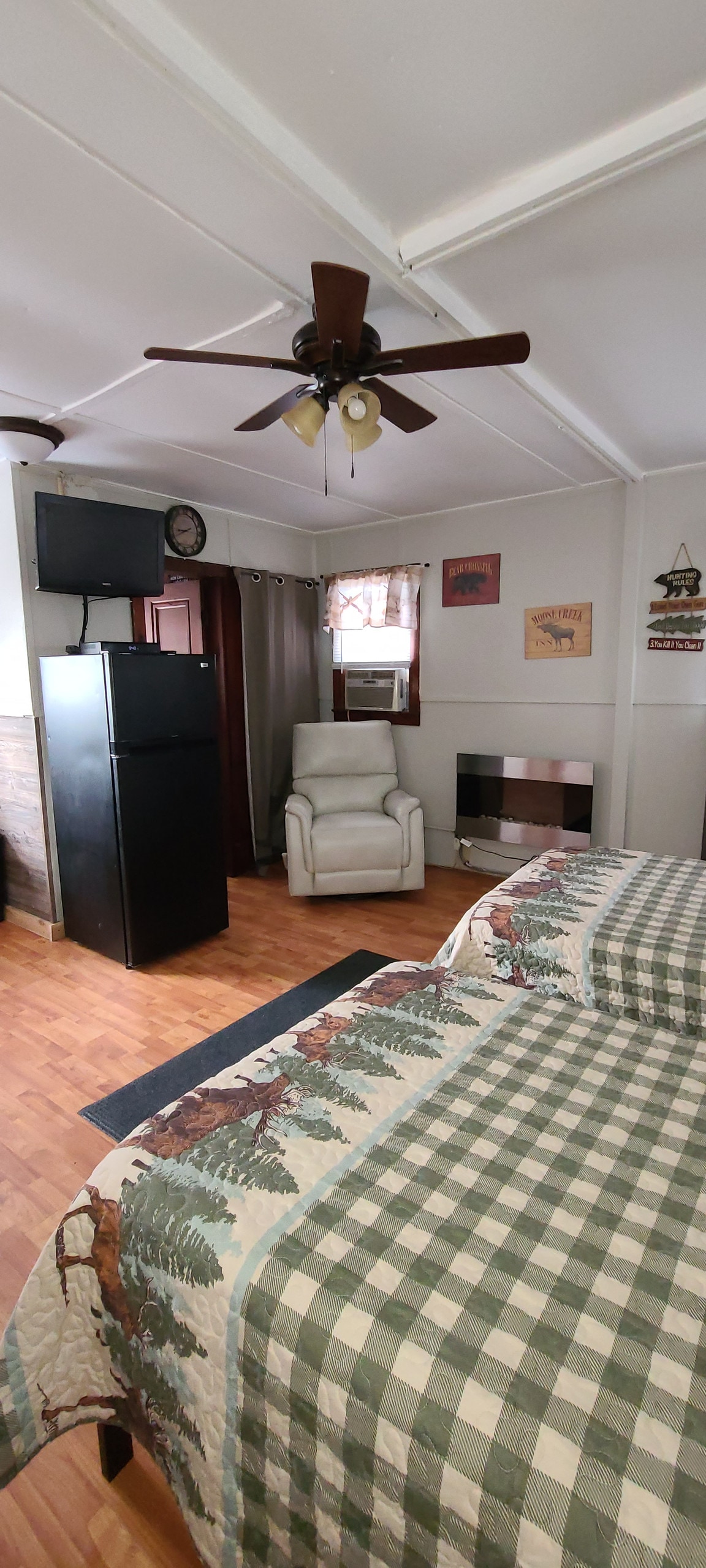 Skab nogle minder i denne unikke og familievenlige bolig. Oplev livet i et minihus i vores lille hytte. Nyd den smukke Rocky Fork Lake, Amish-landskabet, vandreture og udforsk The Arc of Appalachia. Bådudlejning er lige nede ad vejen på Bayside Bait and tackle. Vores hytte har 2 senge i fuld størrelse ovenpå i loftområdet samt en behagelig queen sofa, der også er en god seng. Der er et lille bord og stole. Der er også et større køleskab på den overdækkede bagveranda.