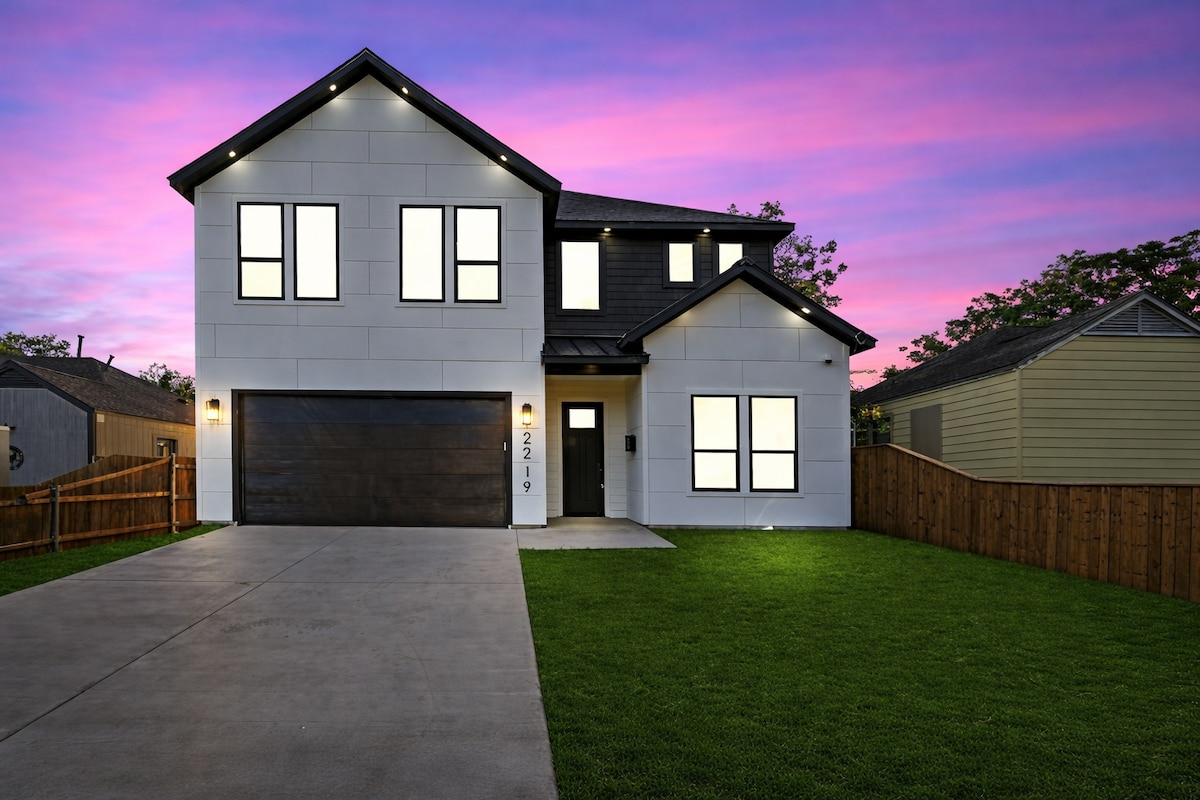 Velkommen til vores charmerende hjem med 4 soveværelser og 3,5 badeværelser, kun få minutter fra Downtown Dallas. Start din morgen med kaffe fra vores latte-maskine, og slap af om aftenen med barvognen. Baghaven er perfekt til familieunderholdning med et bålsted til s'mores, en grill til grillmad, hængekøjer til afslapning og spil, så børnene er underholdt. Der er noget for enhver smag, så det er det ideelle sted at slappe af eller udforske – lige meget hvad du vælger.