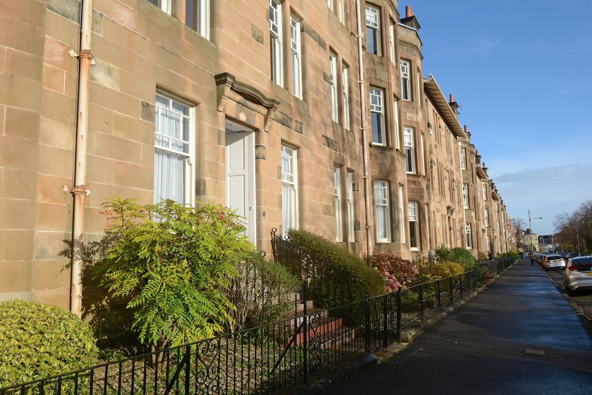 Fremragende placeret privat indgang i den løvfulde forstad Pollokshields med gratis, nem parkering uden for døren. Oplev en traditionel lejlighed i Glasgow-lejlighedsstil med smukke originale træk og enorme dimensioner. Denne komfortable ejendom har store værelser og er møbleret i traditionel stil. Gå til restauranter, barer, butikker og togstation - 6 minutter til byens centrum og tog til SECC/Hydro/Emirates Arena til udstillinger, konferencer og arrangementer. Sainsbury's ligger 3 minutters gang.