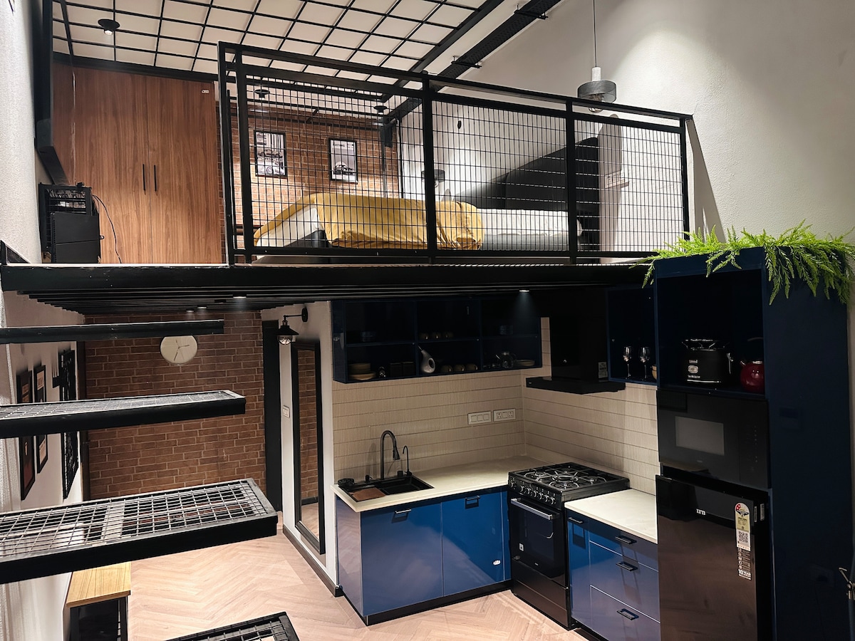 Oplev vores elegante toetagers loft i Dehradun! Med et hyggeligt soveværelse og sovesofa, gratis wi-fi, aircondition, tv og to private badeværelser. Arbejd komfortabelt ved en dedikeret arbejdsstation i et rum med højt til loftet, store vinduer, en privat balkon og terrasse. Oplev et fuldt udstyret køkken kombineret med et indbydende og innovativt loftsnet sammen med vigtige bekvemmeligheder såsom en førstehjælpskasse, brandslukker, gratis parkering, problemfri indtjekning uden vært, brætspil, hårtørrer, strygejern og en barnestol.