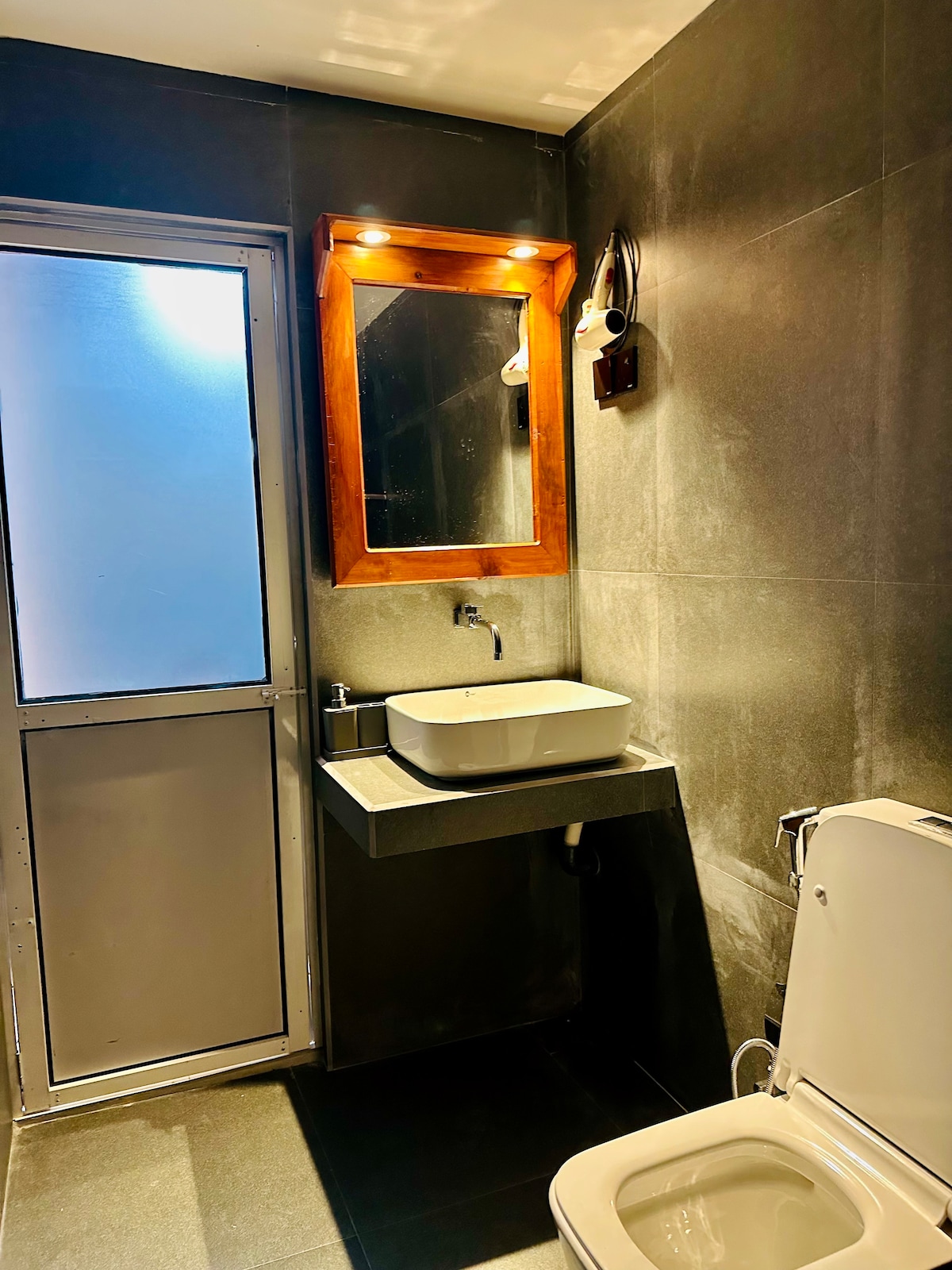 Bo på Hello Mirissa, hvor moderne design møder tropisk ro. Dette luksuriøse boutique-værelse med aircondition har en kingsize-seng, et tilstødende badeværelse med walk-in-brusebad og et privat udendørs spiseområde, der er perfekt til rolige måltider. Perfekt til par eller forretningsrejsende, der leder efter ro nær populære attraktioner som Mirissa Beach og Weligama's Kai Beach Club. Værelset er indrettet med basisting, så du kan få et behageligt ophold.