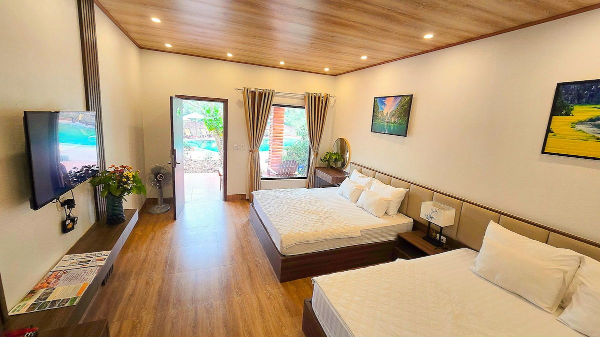 Ejendommen ligger midt i det berømte vartegn i Trang An og har smuk udsigt fra rummet til søen og bjergene på begge sider af vinduet.