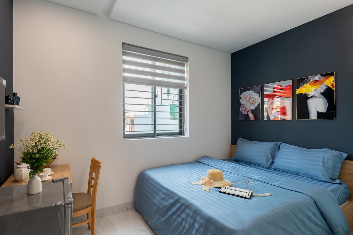 * * * - Dette er et dobbeltværelse designet til 1-2 personer med et areal på 18 m2. Med 01 queensize-seng, alle basale faciliteter, selvstændigt toilet - Den fredelige, rene bolig ligger i hjertet af Da Nang by, kun 300 m fra lufthavnen, 1 km fra lufthavnen, på hovedvejen i Nguyen Van Linh - Cau Dragon - My Khe er praktisk til at rejse for attraktioner, spisesteder.