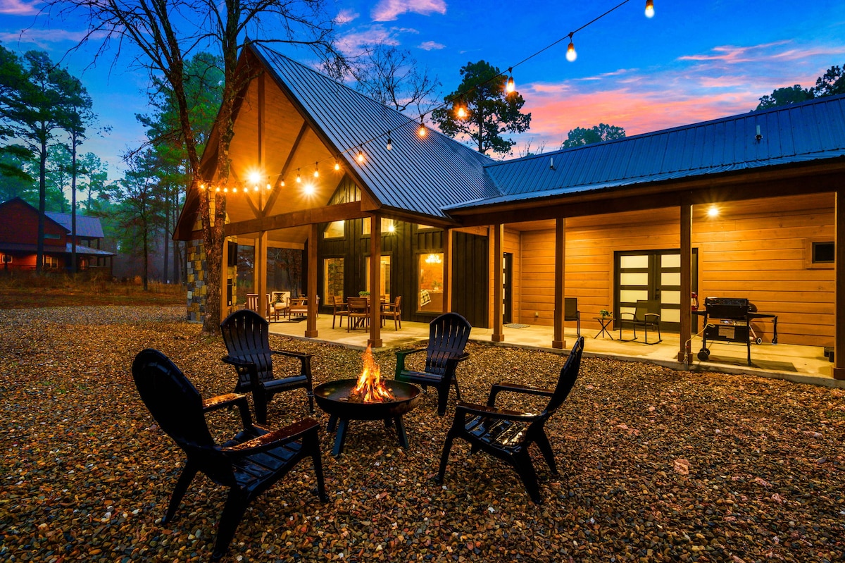 Romantisk luksushytte på 1,5 privat hektar i Broken Bow. Har en blød kingsize-dobbeltseng, et stort boblebad, en dobbeltbruser i spa-stil, et badekar, indendørs/udendørs pejse og en privat sti. Ideel til par, bryllupsrejser eller små familier. Bygget i 2022 med åbent layout, designersofa og eksklusive finish. Omgivet af natur, men kun få minutter fra vandreture, vingårde og Broken Bow Lake. Rangeret som Airbnb's Gæstefavorit, Sjælden fundet og 8x Superhost. Book nu – weekender og de mest populære datoer bliver hurtigt taget.