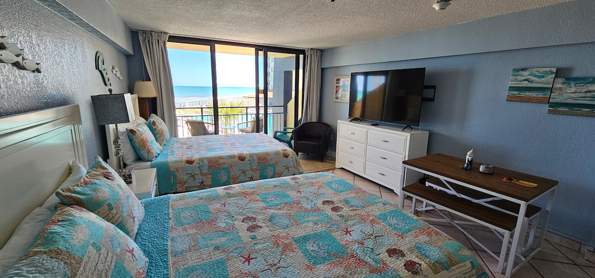 Velkommen til vores studiolejlighed ved havet, trin til havet og i hjertet af verdens mest berømte strand! Vores studiolejlighed har en rummelig balkon. 2 pools, et fitnesscenter, grill med mere. Wi-fi og smart-tv til underholdning på værelset. Hvis du ønsker at lære at surfe eller er her for en god tid denne sommer, er du i hjertet af det sjove, mindre end 1 mile fra alt det, der sker her i Daytona Beach. Vores faciliteter omfatter: √ Ved stranden √ Gratis wi-fi √ Gratis parkering √ Indtjekning uden vært Book nu!