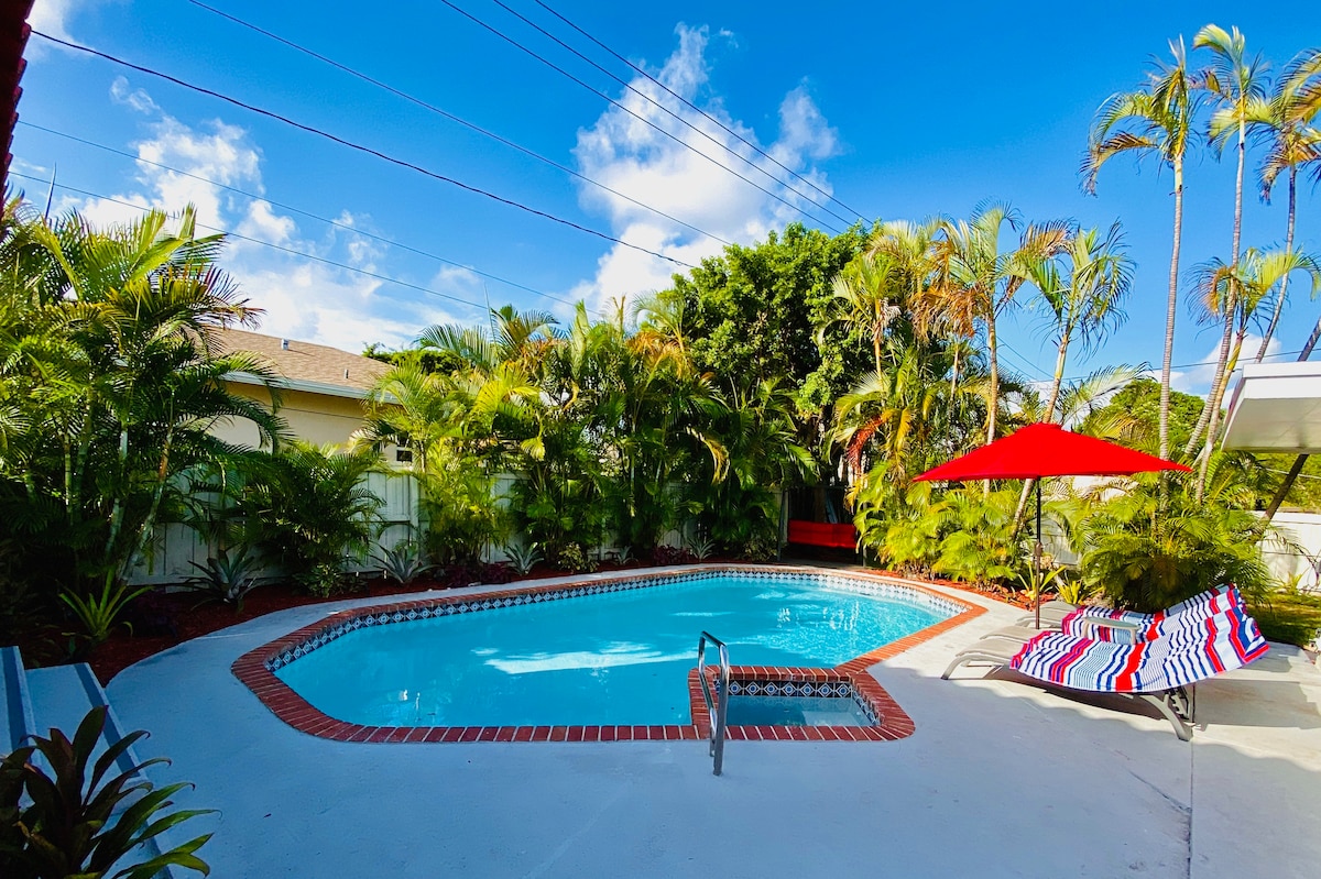 Velkommen til vores lykkelige sted! Dette enfamiliehus ligger i et smukt og fredeligt kvarter omgivet af parker, natur og en nærliggende flod. Nyd gratis parkering, hurtig WiFi, smart 4K-tv, en stor have, en bålplads, udendørs spiseplads og et fuldt udstyret køkken og komfort for op til fire gæster. Boligen ligger kun 5-10 minutters kørsel fra lokale aktiviteter, restauranter, Wilton Manors, Downtown/Las Olas og Fort Lauderdale Beach.