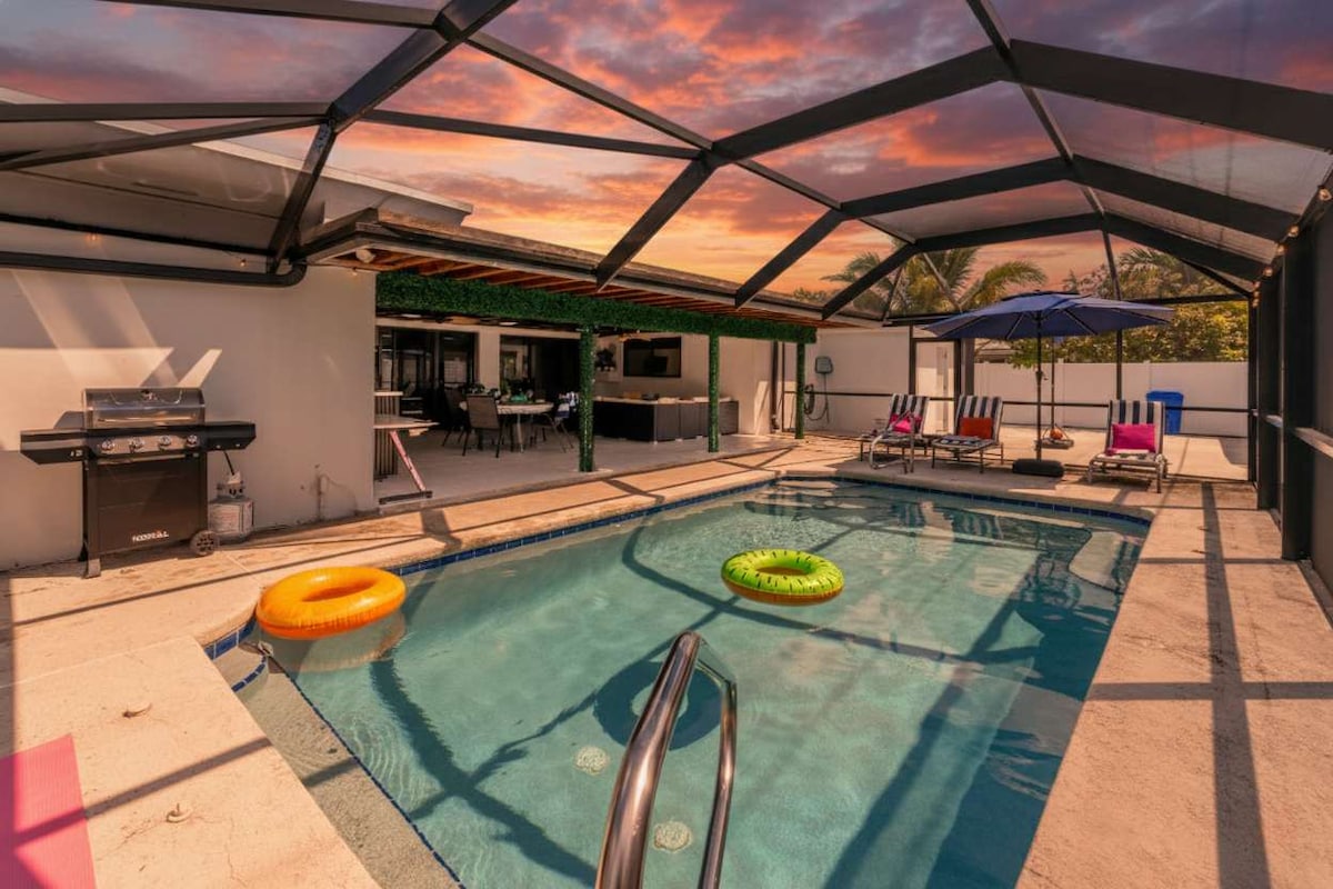 ★ "De mest komfortable madrasser og tæpper, jeg nogensinde har sovet i. " ☞ Terrasse med udendørs spisning + grill + pejs ☞ Opvarmet lukket pool* m/legetøj ☞ Afskærmet veranda + lounge på bagsiden ☞ King i det store soveværelse ☞ 65" Smart-tv + Netflix ☞ Fuldt udstyret + velassorteret køkken ☞ Parkeringsindkørsel → (2 biler) ☞ 630 mbps wifi 4 minutter → DT Hollywood (caféer, spisesteder, shopping) 12 minutter → Hollywood Beach ⛱ + FLL International Airport ✈ 20 minutter → DT Miami + Miami International Airport ✈