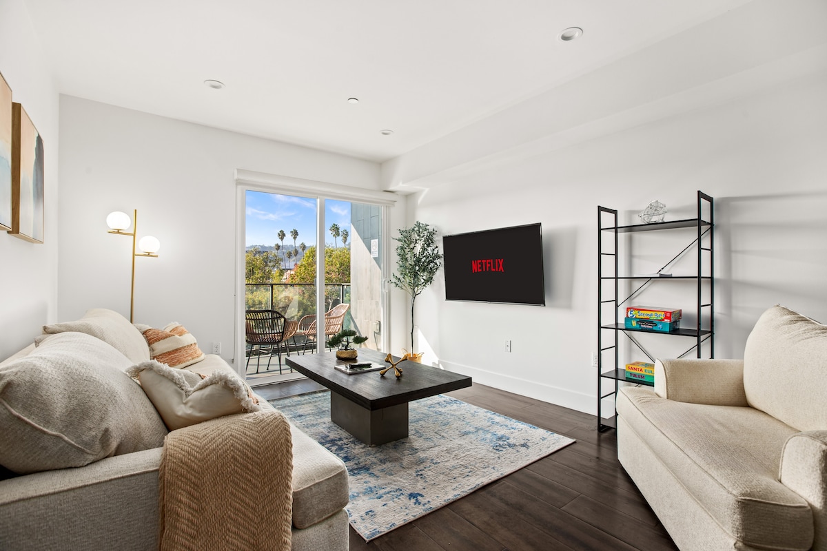 Live your Hollywood dreams in this sleek, modern 1 BR right between iconic Sunset Ave and Hollywood Blvd! Wake up to sunshine, enjoy coffee on the roof overlooking the Hollywood Sign. Walk around and visit the Walk of Fame, historic theaters, and unique LA food spots. Amenities include high speed Wi-Fi, smart TV, king size bed, sleek kitchen, and a extra large greenery filled balcony overlooking the courtyard. The perfect place to escape from the busy city!