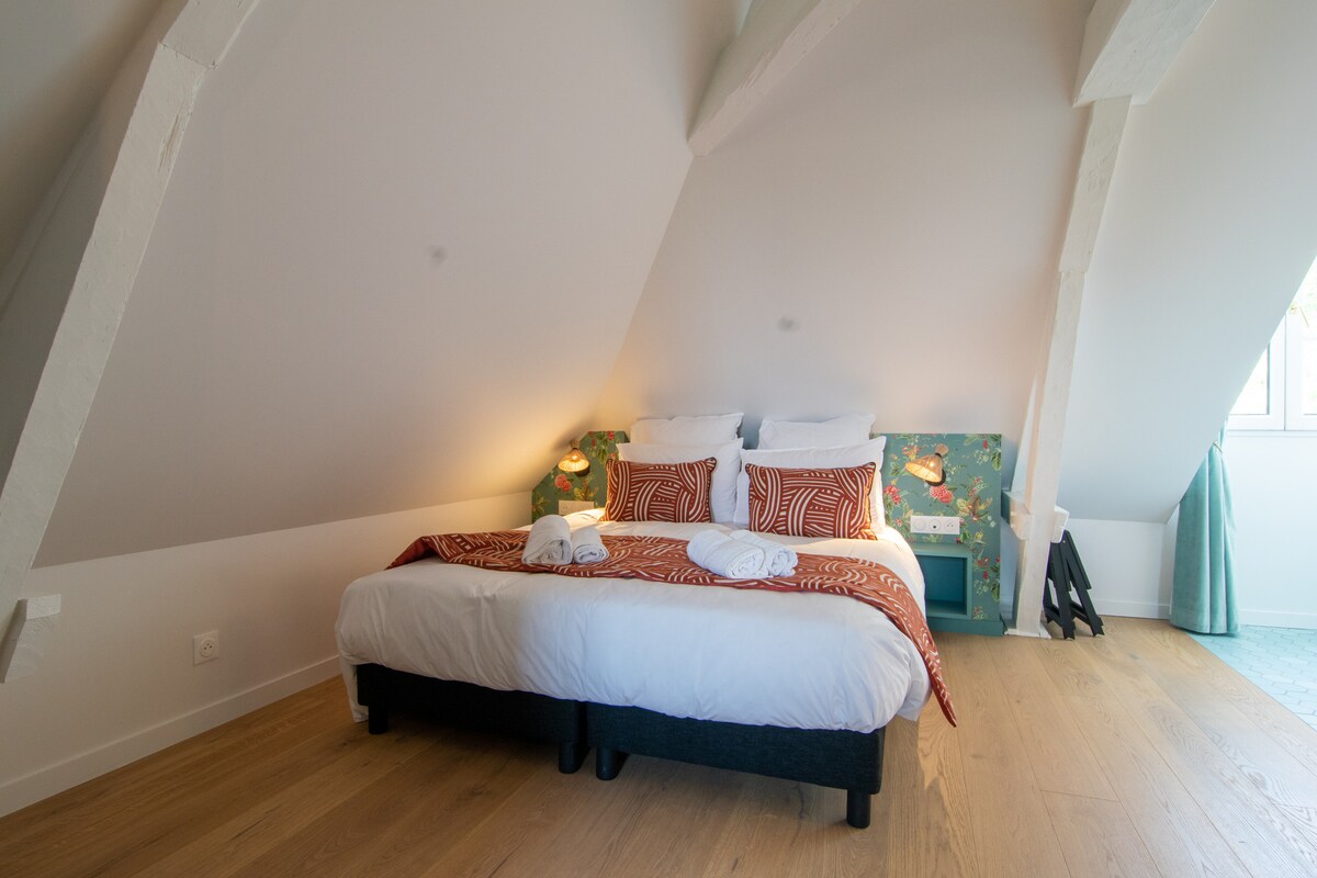 L'Azur er en charmerende duplex på 55 m², der ligger kun få skridt fra det mytiske Honfleur-bassin. Duplexen ligger i huset ved siden af vores. Vi vil med stor glæde byde dig velkommen. Beliggenheden er ideel, på landet, men kun 5 minutter fra havet (i bil). Du vil være placeret i en lille landsby med alle butikker i nærheden (bager, slagter, grønthandler, apotek, frisør). Mindre end 5 minutter væk finder du også et stort indkøbscenter og de nye Honfleur Outlets.