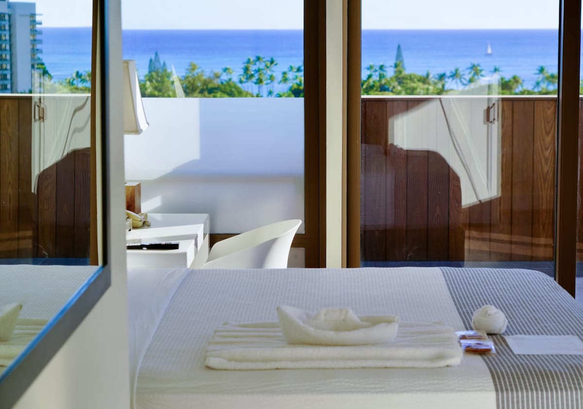Spred jer og slap af som kongelige i en kingsize-sengs bekvemmeligheder. Samtlige værelser er gennemtænkt omdesignet med et moderne udtryk fra midten af århundredet og har smuk udsigt over Waikiki. Ud over aircondition og gratis WiFi, vil gæsterne nyde på værelset faciliteter såsom gratis Korres badefaciliteter, minikøleskab og HD-tv. Forbliv aktiv med træningsudstyr på værelset, eller gør det til en dag i sandet med vores basisting til stranden, som fås gratis. Flere oplysninger nedenfor.
