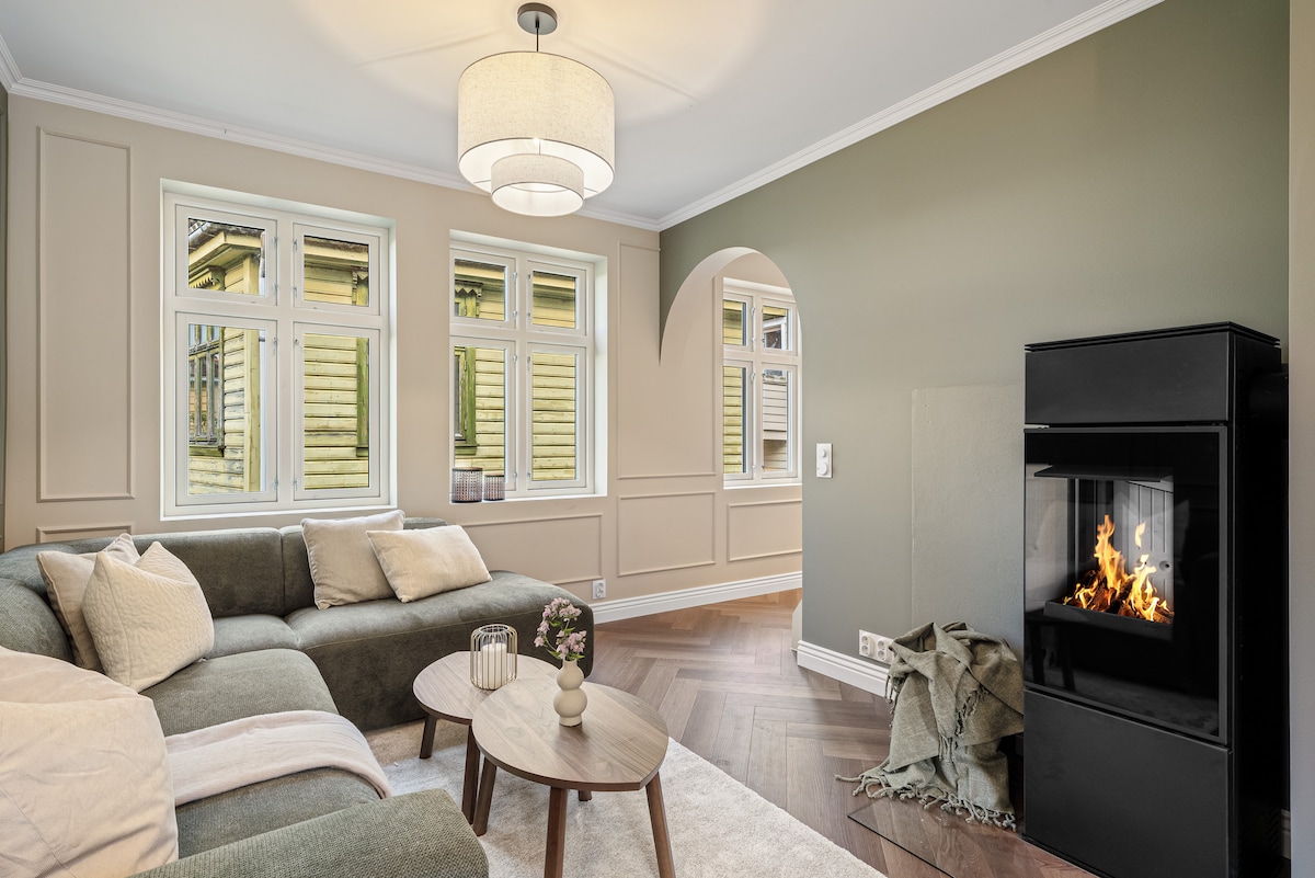 Farverig varme i hjertet af byen (2 private parkeringspladser)