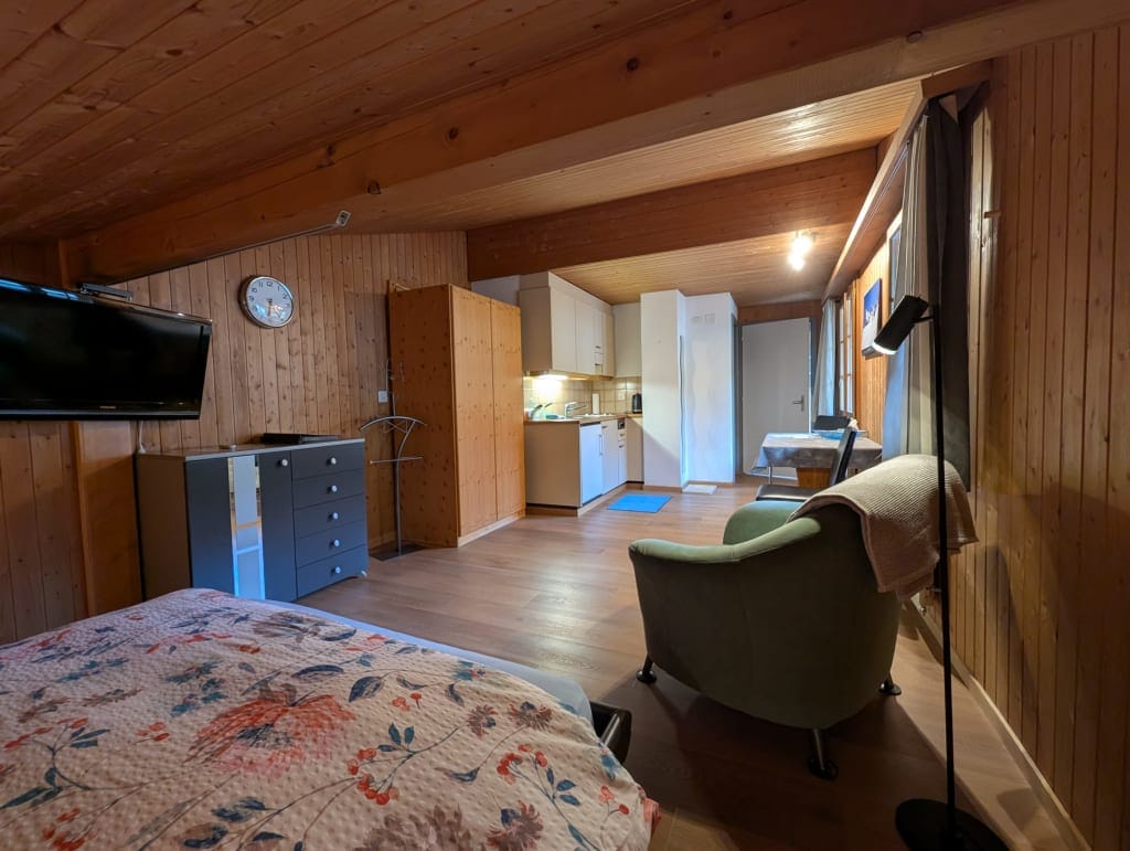 Kompakt atelierlejlighed (17 m2) plus privat toilet/vask/bruser. Gratis off-road parkering og stor have. 150 m gang fra kysten af Lake Lungern til fiskeri, svømning og vandsport. Beliggende på Brünig-passet for en lang række vej-, grus- og mountainbiketure og -ruter. 300 m fra Lungern-Turren-svævebanestationen til vandreture, snesko og skiture. 15 minutter fra det alpine skisportssted Hasliberg. Gratis kaffe (Nespresso) og te. Gratis højhastigheds-WLAN.